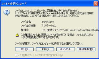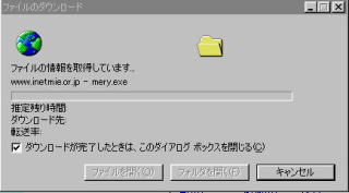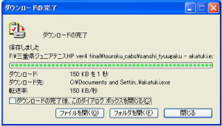 ダウンロードが完了したときは、[このダイアログボックスを閉じる] にチェックがしてあるときはダウンロード終了と同時にダウンロードダイアログボックスを閉じます。